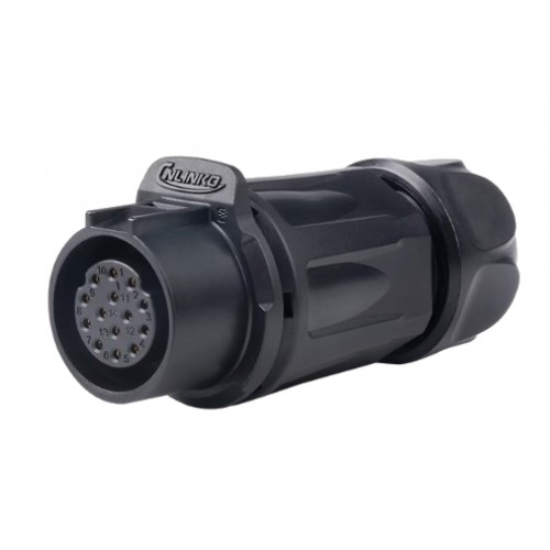 Герметичний роз'єм живлення серії LP - LP-20-J14PP-02-007B - 14-ти контактна герметична міжкабельна розетка серії LP з прямим виводом під кабель 22-20 AWG. Роз'єм має прохідний діаметр - 20 мм, з'єднує ланцюг до 5 А і напругою до 250 В.