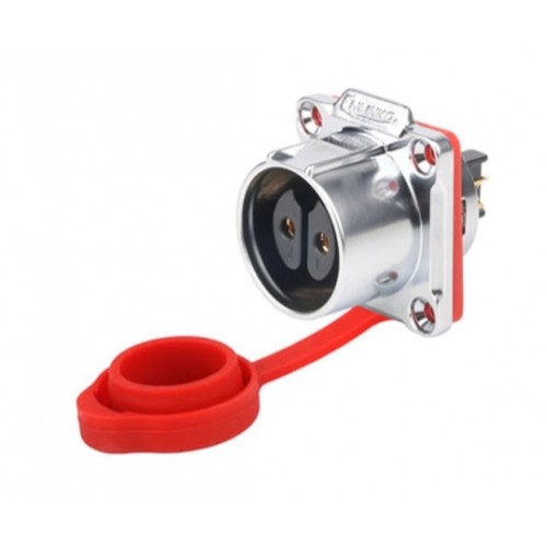 Герметичний роз'єм живлення серії LP - LP-24-J02SX-03-401 - 2-х контактна герметична панельна розетка серії LP з прямим виводом під кабель 14-12 AWG. Вилка має прохідний діаметр - 24 мм, з'єднує ланцюг до 25 А і напругою до 500 В.