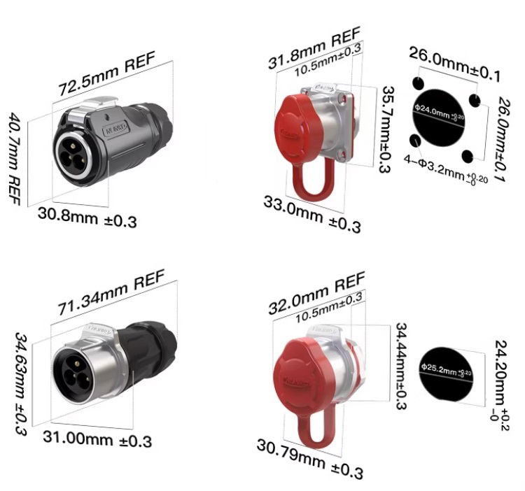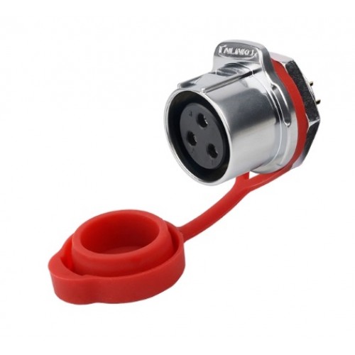 Герметичний роз'єм живлення серії LP - LP-24-J03SX-03-150- 3-х контактна герметична панельна розетка серії LP з монтажем контактів - під пайку. Вилка має прохідний діаметр - 24 мм, з'єднує ланцюг до 45 А і напругою до 300 В.