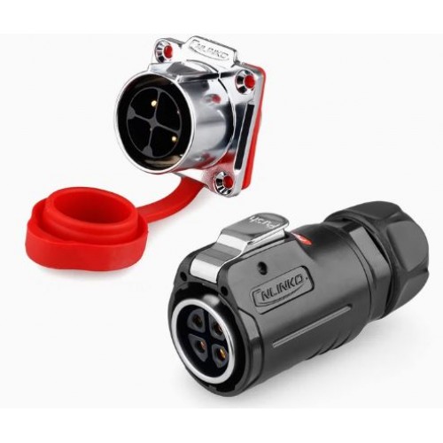 Герметичний роз'єм живлення серії LP - LP-24-J04PE-01-001 - 4-х контактна герметична кабельна розетка серії LP з прямим виводом під кабель 14-12 AWG. Розетка має прохідний діаметр - 24 мм, з'єднує ланцюг до 25 А і напругою до 500 В.
