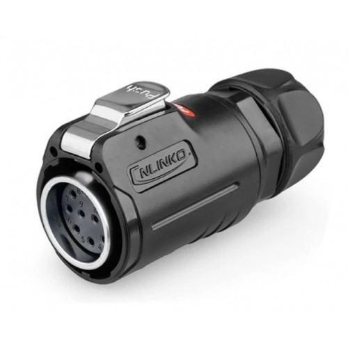 Герметичний роз'єм живлення серії LP - LP-24-J10PE-01-001 - 10-и контактна герметична кабельна розетка серії LP з прямим виводом під кабель 18-16 AWG. Вилка має прохідний діаметр - 24 мм, з'єднує ланцюг до 10 А і напругою до 400 В.