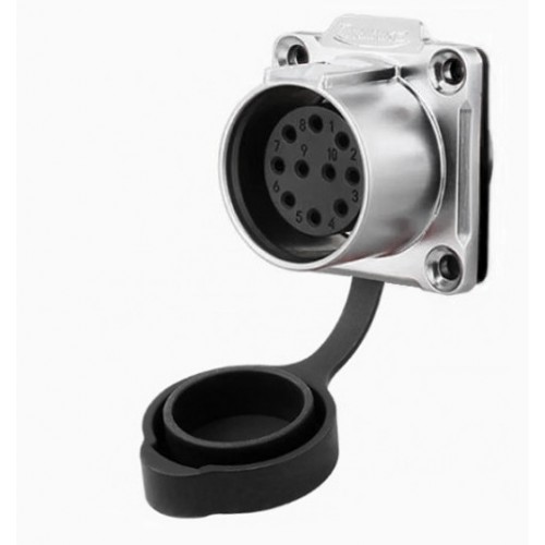Герметичний роз'єм живлення серії LP - LP-24-J10SX-03-402 - 10-и контактна герметична панельна розетка серії LP з прямим виводом під кабель 18-16 AWG. Розетка має прохідний діаметр - 24 мм, з'єднує ланцюг до 10 А і напругою до 400 В.