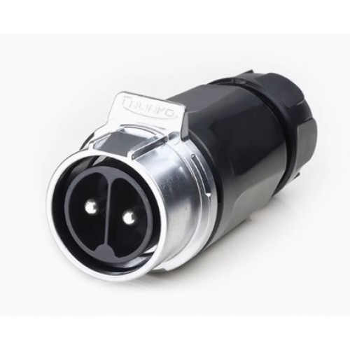 Герметичний роз'єм живлення серії LP - LP-28-C02PP-21-001 - 2-х контактна герметична між кабельна вилка серії LP з прямим виводом під кабель 8-6 AWG і замком. Розетка має прохідний діаметр - 28 мм, з'єднує ланцюг до 50 А і напругою до 500 В. Електричний монтаж проводиться методом фіксації жили кабеля гвинтами.