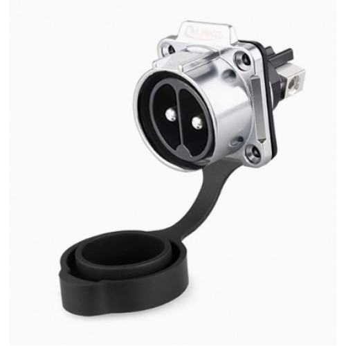 Герметичний роз'єм живлення серії LP - LP-28-C02SX-23-401 - 2-х контактна герметична панельна вилка серії LP з прямим виводом під кабель 8-6 AWG і замком. Розетка має прохідний діаметр - 28 мм, з'єднує ланцюг до 50 А і напругою до 500 В. Електричний монтаж проводиться методом фіксації жили кабеля гвинтами.