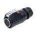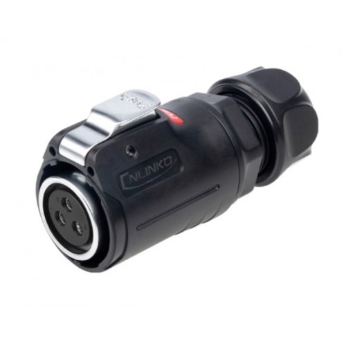 Герметичний роз'єм живлення серії LP - LP-24-J03PE-01-050 - 3-х контактна герметична кабельна розетка серії LP з прямим виводом під кабель 8 AWG. Вилка має прохідний діаметр - 24 мм, з'єднує ланцюг до 45 А і напругою до 300 В.
