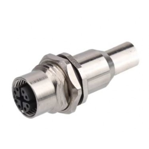 Розетка M12-S8X-GWFM16S-PBG з внутрішньою різьбою для кріплення на панель приладу гайкою з зовнішньої сторони, для екранованого кабелю в приладі.