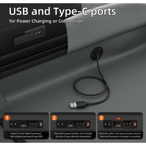 Має вбудовані порти зарядки USB-A та USB-C. Дозволяють підключити портативний зарядний пристрій (не входить до комплекту) всередину чохла та зручно заряджати телефон або інші пристрої, не відкриваючи сумку.
