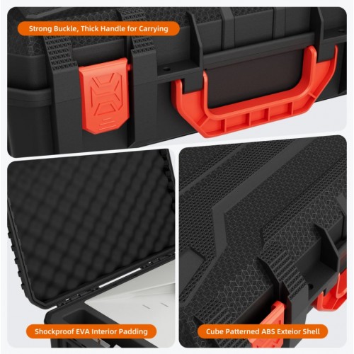 Має надійну систему фіксації та зручну ручку, що забезпечує надійне закриття та легке перенесення. Міцні засувки щільно закривають кейс, захищаючи ваше обладнання від пилу та вологи, а ергономічна ручка забезпечує комфортне перенесення.