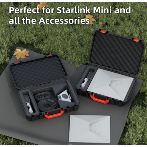 Дорожній футляр MINI-BAG8 для Starlink Mini – має довговічну поліпропіленову зовнішню частину, спеціальне пінопластове внутрішнє покриття для безпечного та організованого зберігання, а також зручну ручку для перенесення. Розроблений для захисту вашого Starlink Mini та його аксесуарів під час подорожей, він пропонує надійне та портативне рішення для зберігання.