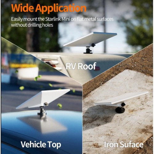 Оснащене регульованою на 360 градусів кульовою головкою, що дозволяє легко повертати та розташовувати міні-антену Starlink для оптимального прийому сигналу. Така гнучкість дозволяє точно налаштувати напрямок антени незалежно від орієнтації поверхні кріплення.