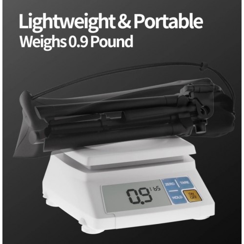 Штатив неймовірно легкий, важить лише 400 грамів. Його компактна та складна конструкція робить його неймовірно портативним та зручним для перенесення, що робить його ідеальним для подорожей, кемпінгу, подорожей автофургонами та інших пригод на свіжому повітрі.