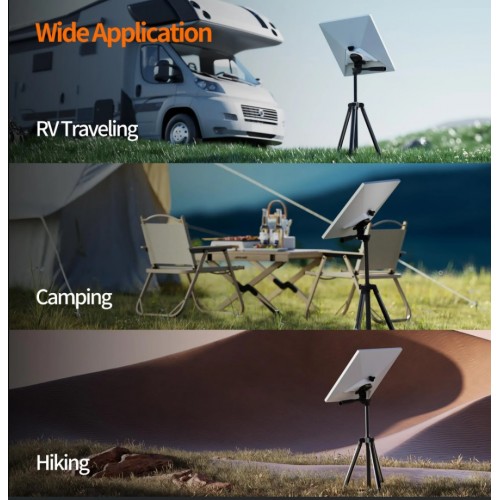 Штатив має три регульовані панелі та центральну стійку, що забезпечує широкий спектр варіантів позиціонування. Користувачі можуть легко регулювати висоту та кут нахилу міні-антени Starlink для досягнення найкращого прийому сигналу в будь-якому місці.