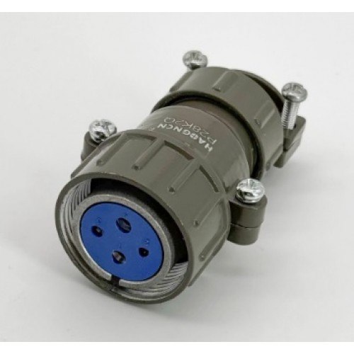 Роз'єм P28K2A-4Q - промислова кабельна розетка на 4 контакти, з'єднує електричний ланцюг на 500В і 10А. Кріплення до відповідної частини - різьбове. Матеріал корпусу - алюмінієвий сплав проемальований фарбою темно-оливкового кольору. Матеріал контактів - мідь із антикорозійним покриттям.