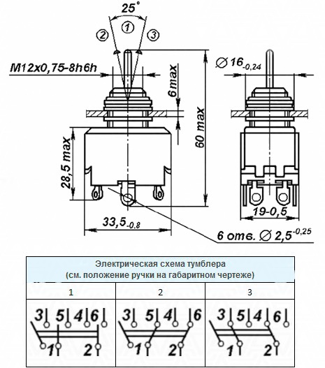 Тумблер П2Т-1 П2Т-1Л звичайна У двох крайніх і середньому положенні