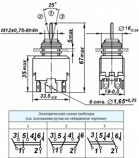 Тумблер П2Т-1 П2Т-3В звичайна В одному крайньому і середньому положенні