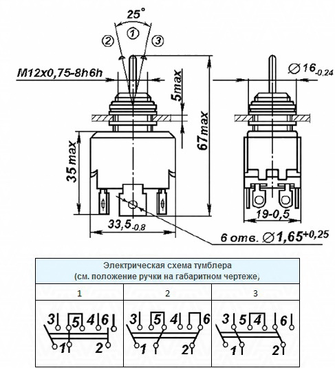 Тумблер П2Т-1 П2Т-7Л звичайна У двох крайніх і середньому положенні