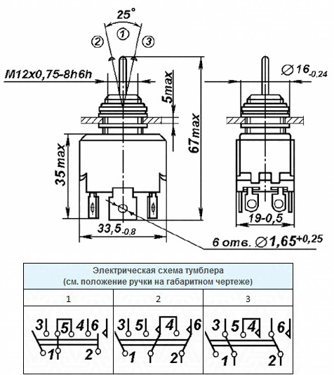 Монтаж виводів – під пайку. Ступінь захисту – IP40Характеристики, розшифрування маркування, розміри і схеми комутації перемикачів П2Т вказані нижче.
