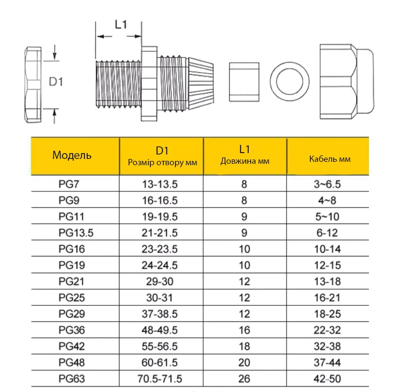 Діаметр кабелю 16-21 мм