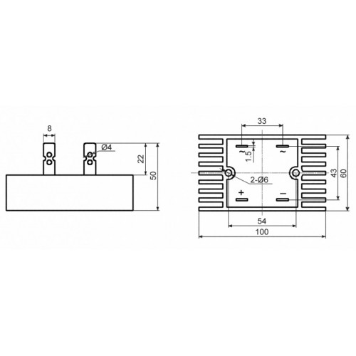Корпус діодних мостів металевий. Всі компоненти всередині корпусу електрично ізольовані епоксидною смолою (компаундом) з високим рівнем вогнестійкості.