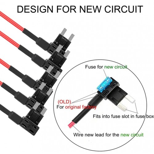 Відмінно підходить для LED-підсвічування, відеореєстраторів, GPS, аудіосистем та інших пристроїв, що потребують прямого підключення до fuse box. Гнучкий хвостик-клема легко з'єднується з оголеним дротом за допомогою обтискного інструменту або лещат.