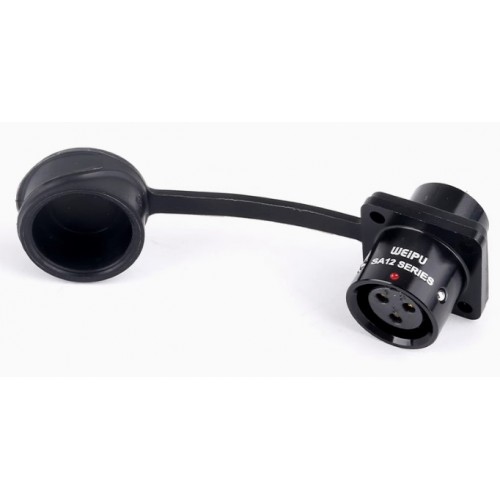 Роз'єм Weipu SA1213/S3 – панельна розетка на 3 контакта, з кріпленням до панелі на 4 гвинта. Призначена для роботи з напругою 250 В та струмовим навантаженням до 13 А, має посадковий діаметр 12 мм.