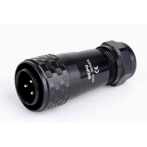 Роз'єм Weipu SA2010/P3-3 – кабельна вилка на 3 контакта, призначена для роботи з напругою 500 В та струмовим навантаженням до 25 А, має посадковий діаметр 20 мм. Виводи на кабель з'єднуються за допомогою обтискання контактів.
