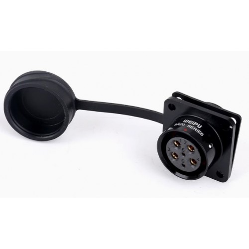 Роз'єм Weipu SA2013/S6 – панельна розетка на 6 контактів, з кріпленням до панелі на 4 гвинта. Призначена для роботи з напругою 500 В та струмовим навантаженням до 25 А, має посадковий діаметр 20 мм.