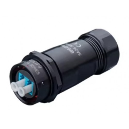 Роз'єм Weipu SA2411/SLC - міжкабельна розетка з інтерфейсом LC, розрахована на роботу у складних та агресивних умовах експлуатації. Байонетний механізм фіксації забезпечує швидке підключення та міцну фіксацію без ризику мимовільного роз'єднання. Корпус роз'єму виконаний із зносостійких матеріалів та відповідає ступеню захисту IP67, гарантуючи стійкість до вологи, пилу та механічних навантажень.