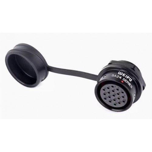 Роз'єм Weipu SA2412/S19 – панельна розетка на 19 контактів, призначена для роботи з напругою 400 В та струмовим навантаженням до 5 А, має посадковий діаметр 24 мм.