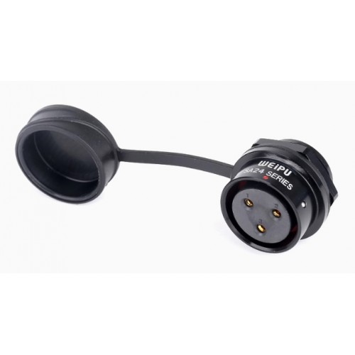 Роз'єм Weipu SA2412/S5-3 – панельна розетка на 5 контактів, призначена для роботи з напругою 500 В та струмовим навантаженням до 25 А, має посадковий діаметр 24 мм. Виводи на кабель з'єднуються за допомогою обтискання контактів.