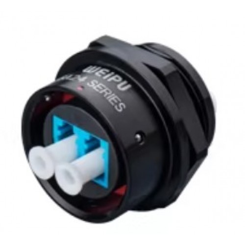 Роз'єм Weipu SA2412/SLC - панельна розетка з інтерфейсом LC, розрахована на роботу у складних та агресивних умовах експлуатації. Байонетний механізм фіксації забезпечує швидке підключення та міцну фіксацію без ризику мимовільного роз'єднання. Корпус роз'єму виконаний із зносостійких матеріалів та відповідає ступеню захисту IP67, гарантуючи стійкість до вологи, пилу та механічних навантажень.