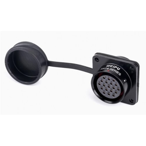 Роз'єм Weipu SA2413/S19 – панельна розетка на 19 контактів, з кріпленням до панелі на 4 гвинта. Призначена для роботи з напругою 400 В та струмовим навантаженням до 5 А, має посадковий діаметр 24 мм.