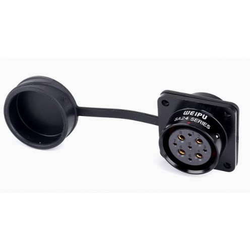 Роз'єм Weipu SA2413/S9-3 – панельна розетка на 9 контактів, з кріпленням до панелі на 4 гвинта. Призначена для роботи з напругою 500 В та струмовим навантаженням до 10 А, має посадковий діаметр 24 мм. Виводи на кабель з'єднуються за допомогою обтискання контактів.