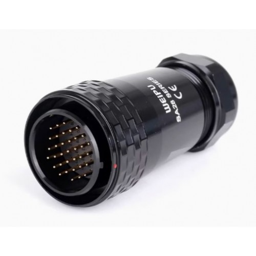 Роз'єм Weipu SA2810/P35 – кабельна вилка на 35 контактів, призначена для роботи з напругою 400 В та струмовим навантаженням до 5 А, має посадковий діаметр 28 мм.