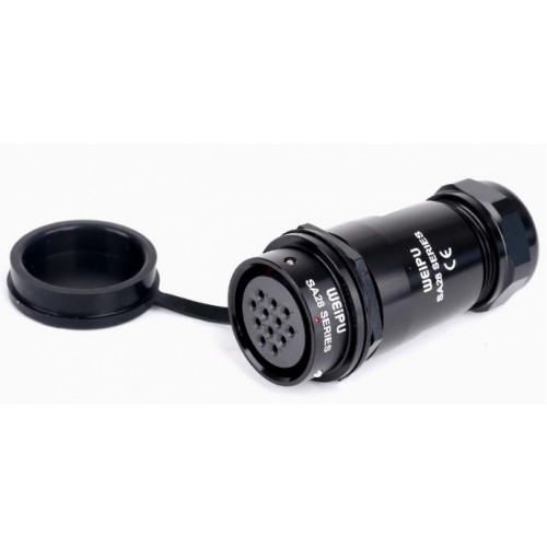 Роз'єм Weipu SA2811/S12-3 – міжкабельна розетка на 12 контактів, призначена для роботи з напругою 400 В та струмовим навантаженням до 10 A, має посадковий діаметр 28 мм. Виводи на кабель з'єднуються за допомогою обтискання контактів.