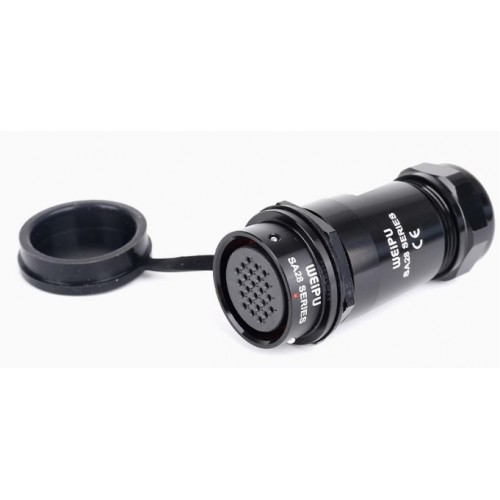 Роз'єм Weipu SA2811/S24  міжкабельна розетка на 24 контактів, призначена для роботи з напругою 400 В та струмовим навантаженням до 5 А, має посадковий діаметр 28 мм.