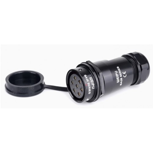 Роз'єм Weipu SA2811/S7 – міжкабельна розетка на 7 контактів, призначена для роботи з напругою 500 В та струмовим навантаженням до 25 А, має посадковий діаметр 28 мм.