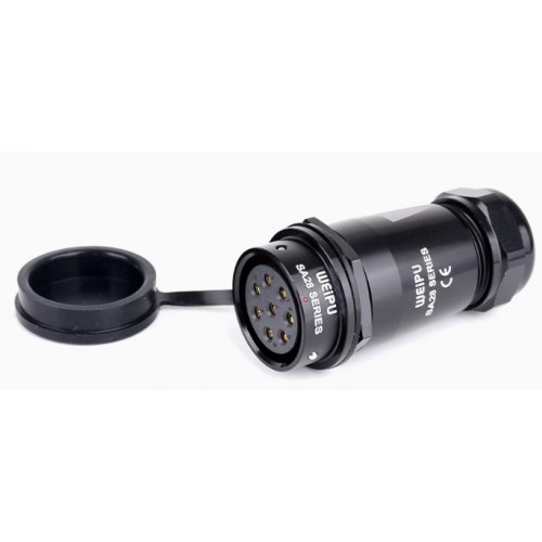 Роз'єм Weipu SA2811/S8  міжкабельна розетка на 8 контактів, призначена для роботи з напругою 500 В та струмовим навантаженням до 25 А, має посадковий діаметр 28 мм.