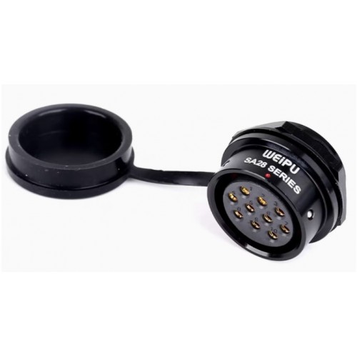 Роз'єм Weipu SA2812/S10 – панельна розетка на 10 контактів, призначена для роботи з напругою 500 В та струмовим навантаженням до 25 А, має посадковий діаметр 28 мм.