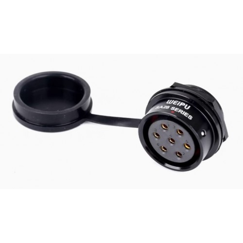 Роз'єм Weipu SA2812/S7 – панельна розетка на 7 контактів, призначена для роботи з напругою 500 В та струмовим навантаженням до 25 А, має посадковий діаметр 28 мм.