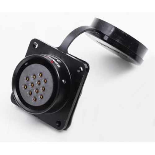 Роз'єм Weipu SA2813/S12 – панельна розетка на 12 контактів, з кріпленням до панелі на 4 гвинта. Призначена для роботи з напругою 400 В та струмовим навантаженням до 10 A, має посадковий діаметр 28 мм.