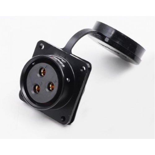 Роз'єм Weipu SA2813/S3 – панельна розетка на 3 контакта, з кріпленням до панелі на 4 гвинта. Призначена для роботи з напругою 500 В та струмовим навантаженням до 50 А, має посадковий діаметр 28 мм.