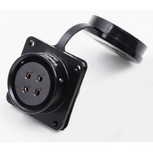 Роз'єм Weipu SA2813/S4 – панельна розетка на 4 контакта, з кріпленням до панелі на 4 гвинта. Призначена для роботи з напругою 500 В та струмовим навантаженням до 25 А, має посадковий діаметр 28 мм.