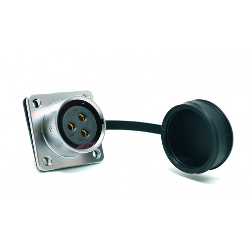 Роз'єм Weipu SF2013/S3 - панельна розетка на 3 контакти, призначена для роботи з напругою 500B та струмовим навантаженням до 25A, має посадковий діаметр 20 мм.