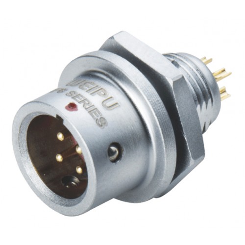 Роз'єм Weipu SF612/P4 - панельна вилка на 4 контакти, призначена для роботи з напругою 30В та струмовим навантаженням до 3А, має посадковий діаметр 6 мм.