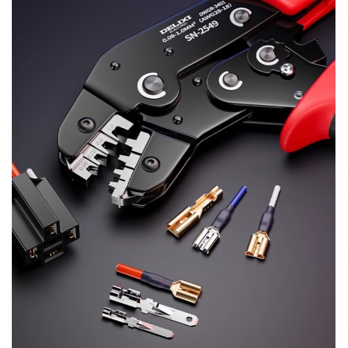 Інструмент для обжиму клем SN-2549 - ручні щипці-обжимачі, призначені для надійного обтиску клем без потреби пайки чи зварювання. Застосовуються для відкритих “open barrel” клем, втулкових наконечників та роз'ємів проводів, що використовуються в різних електротехнічних роз'ємах. Інструмент зручний як для електромонтажу, так і для робіт DIY, ремонту техніки чи електропроводки.