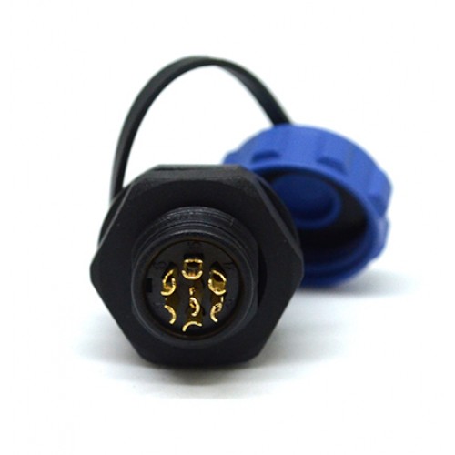 Роз'єм Weipu SP1312/S7 - панельна розетка на 7 контактів з різьбовим з'єднанням. Діаметр контактів 1 мм, номінальне навантаження 125В, струм 5А.
