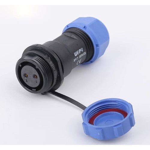 Роз'єм Weipu SP1711/S2 - міжкабельна розетка на 2 контакта з різьбовим з'єднанням. Діаметр контактів 1.5 мм, номінальне навантаження 500В, струм 10А.