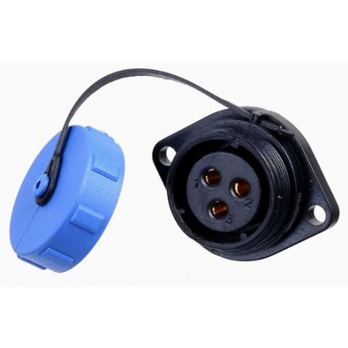 Роз'єм Weipu SP2113/S3 - панельна розетка на фланець на 3 контакта з різьбовим з'єднанням. Діаметр контактів 3 мм, номінальне навантаження 500В, струм 30А.