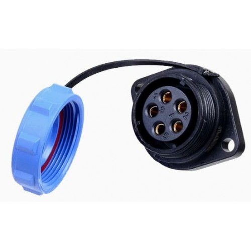 Роз'єм Weipu SP2113/S5 - панельна розетка на фланець на 5 контактів з різьбовим з'єднанням. Діаметр контактів 3 мм, номінальне навантаження 500В, струм 30А.